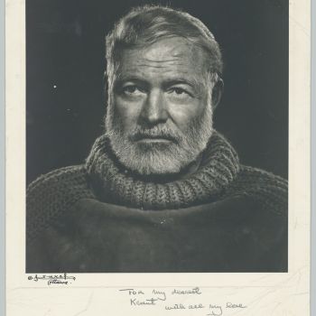 Widmungsfoto von Ernest Hemingway für Marlene Dietrich »For my dearest Kraut with all my love Papa. 1934 – 1959 – always ok EH«, 1959, Ottawa