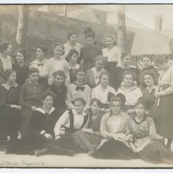 Klassenfoto der Viktoria-Luisen-Schule; Marlene Dietrich mit einer auffällig großen Schleife ist die Zweite von rechts in der ersten Reihe; Berlin-Wilmersdorf, 1918