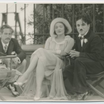 Josef von Sternberg und Marlene Dietrich besuchen Charlie Chaplin am Set von ›City Lights‹ (USA 1931, Regie: Charlie Chaplin) in Los Angeles