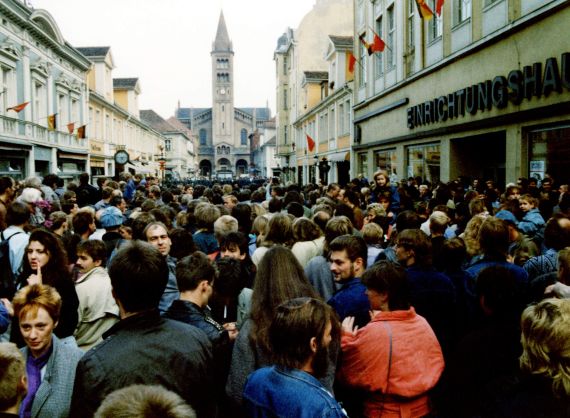 Die Ausstellung „Wir waren so frei … Momentaufnahmen 1989/1990“ führt anhand von Foto, Film und Fernsehen den Bilderreichtum der Zeitenwende vom Mai 1989 bis Dezember 1990 vor Augen.