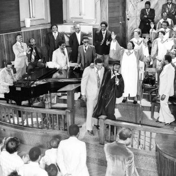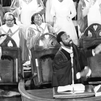 Mit Mikrofon: Bischof Huie L. Rogers | Szenenfoto
