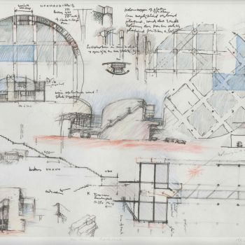 Skizze des niederländischen Architekten Herman Hertzberger für das geplante und nie realisierte Filmhaus im Hotel Esplanade unweit des Potsdamer Platzes, für das sich Heinz Rathsack in den 1980er-Jahren einsetzte