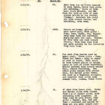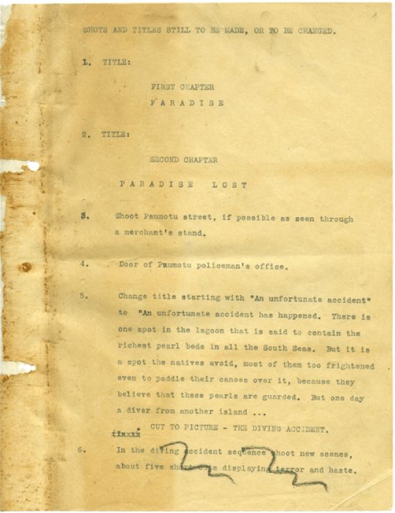Ende Dezember 1929 kehrte die Crew zurück nach Tahiti, wo zunächst Aufnahmen am Fautaua-Wasserfall in der Nähe von Papeete entstanden.