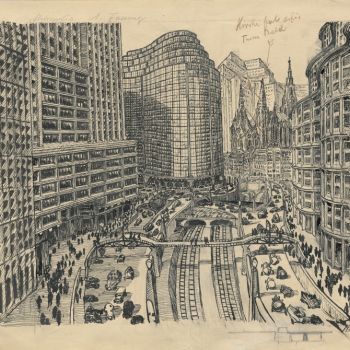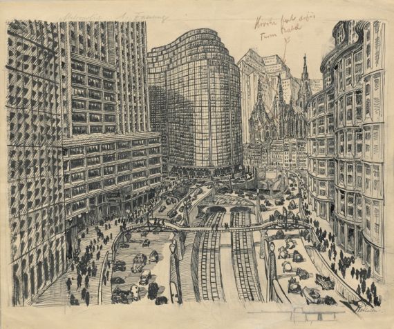 Sketch for a set design, “Metropolis, City, 1st Version” by Erich Kettelhut, 1927